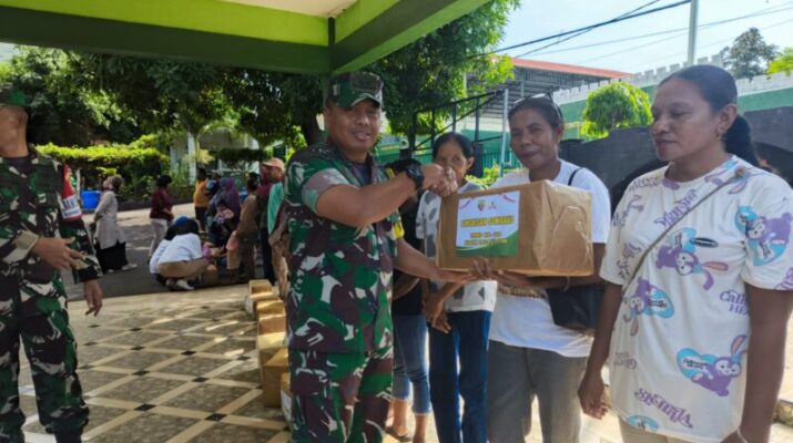Gentra.co.id –Flotim – Kunjungan Kerja Hari Kedua Asops Kasad Mayjen TNI Christian Kurnianto Tehuteru (Tim Wasev TMMD) bersama rombangan menyerahkan Bingkisan Sembako secara simbolis