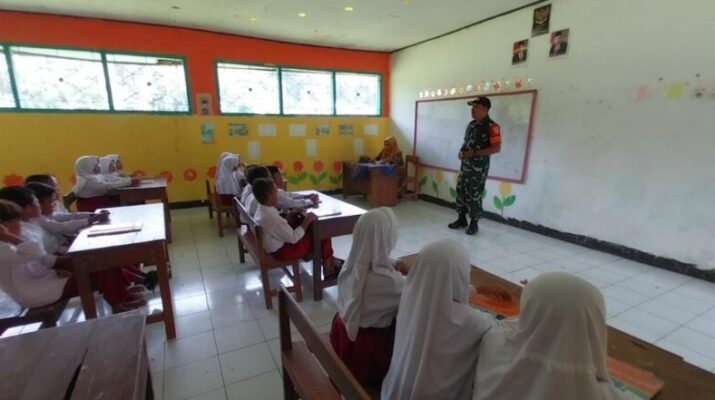 Dompu-NTB. Babinsa Desa Anamina, Sertu Budiman dari Koramil 1614-06/Manggelewa, melaksanakan kegiatan wawasan kebangsaan (wasbang) bagi para murid SDN 17 Manggelewa, pada Kamis (22/05/2025). Kegiatan