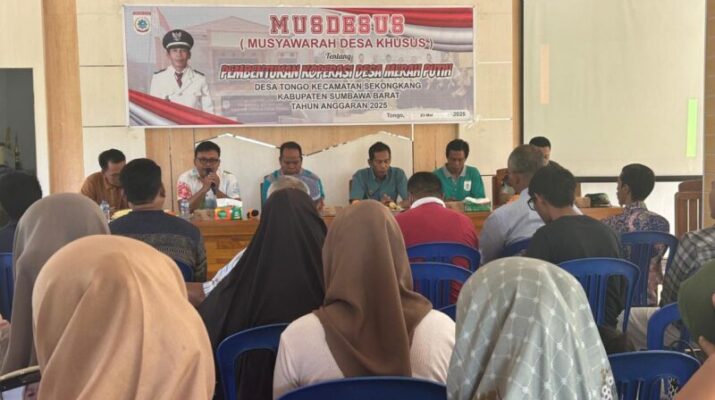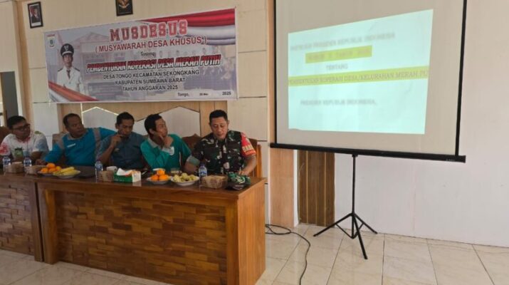Sumbawa Barat, NTB – Babinsa Desa Tongo Sertu Lalu Edi Koramil 1628-02/Sekongkang Kodim 1628/Sumbawa Barat Menghadiri Kegiatan MUSDES ( Pembentukan Koprasia Desa Merah Putih )
