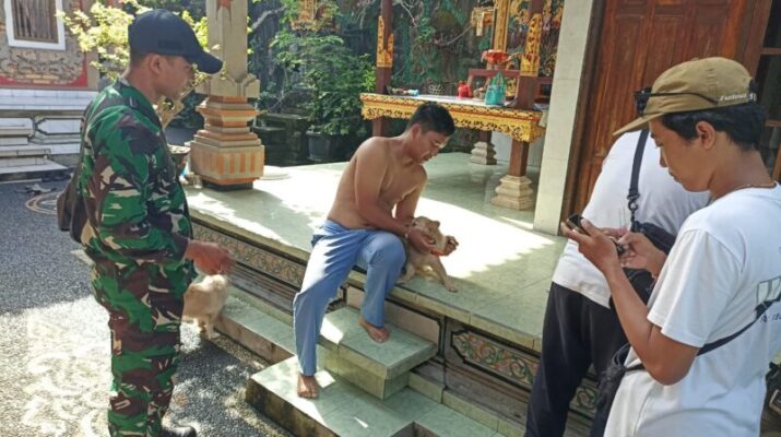 BALI – Badung, Babinsa Desa Munggu, Serda I Nyoman Suka Aji, memantau berlangsungnya vaksinasi rabies untuk anjing dari Dinas Pertanian, bertempat di Desa Munggu,