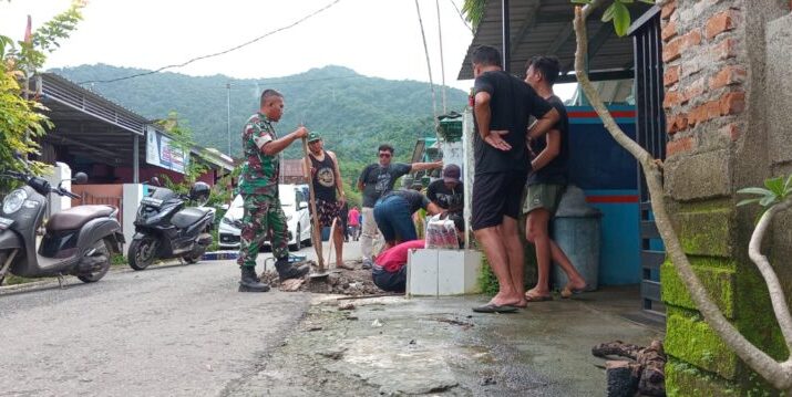 Sumbawa Barat, NTB – Babinsa Desa Sekongkang atas Koramil 1628-02/Sekongkang atas bersama warga desa melaksanakan kegiatan gotong royong membersihkan saluran air atau got tersumbat