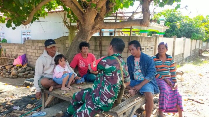 Dompu-NTB. Babinsa Desa Hu’u, Serka Rustam dari Koramil 1614-03/Hu’u, melaksanakan komunikasi sosial (komsos) dengan warga binaannya di Dusun Finis, Desa Hu’u, Kecamatan Hu’u, Kabupaten