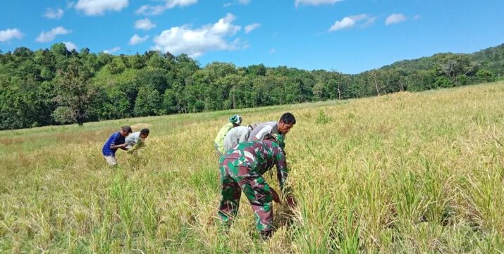 Babinsa Koramil 04/Tabundung Bantu Petani Panen Padi di Desa Wudipandak