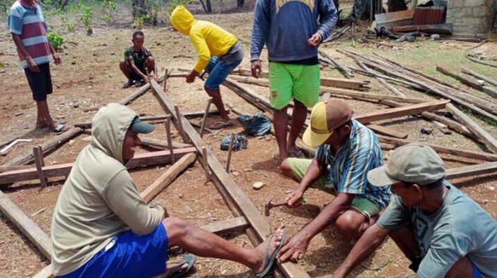 NTT Rote Ndao, Mewujudkan kemanunggalan TNI bersama Rakyat, Babinsa Koramil 02/Pantai Baru Sertu Anderson Telusa bersama warga desa. Melaksanakan gontong royong dengan membantu pembuatan