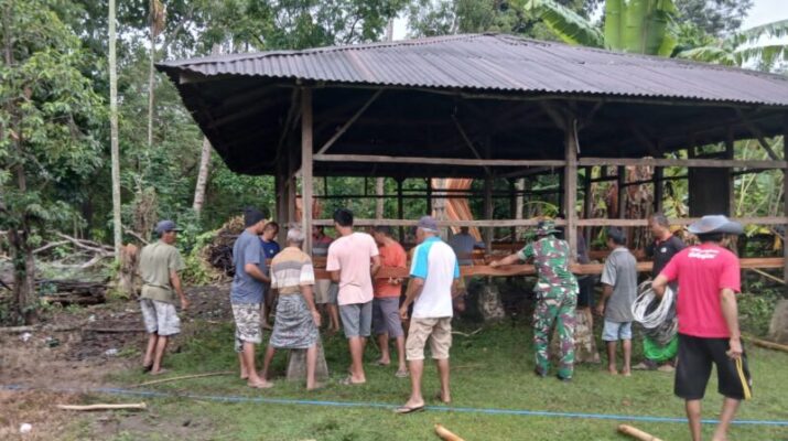 Babinsa Koramil 06/Karera Gotong Royong Pindahkan Rumah Warga Di Desa Nggongi