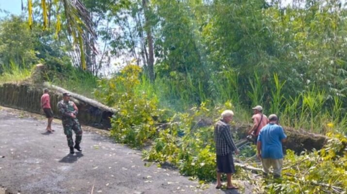 Babinsa Desa Tiga Laksanakan Pengamanan Penebangan Pohon di Pinggir Jalan
