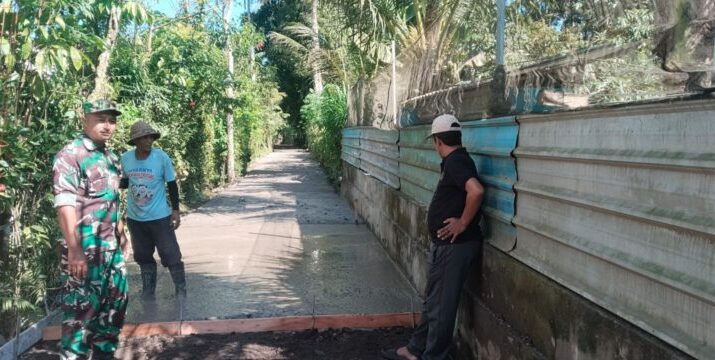 Babinsa Desa Tembuku Monitoring Pembangunan Jalan Rabat Beton di Banjar Tegalasah Kaja