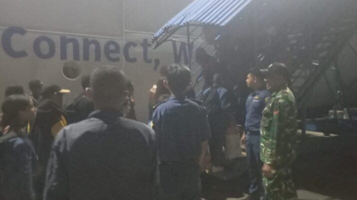 Lembata – Babinsa Koramil 1624-03/Lewoleba Kopda Beni Soares dan Praka Ramadhan melaksanakan pemantauan keamanan dalam kedatangan KM. Bukit Siguntang di Pelabuhan Pelni Lewoleba, Kabupaten