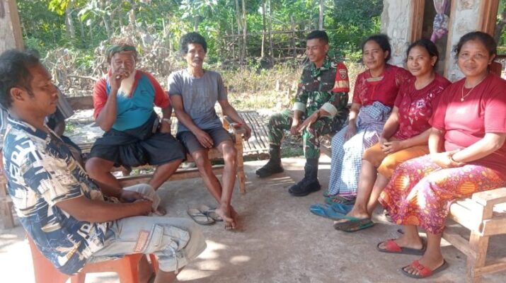 Babinsa, Koramil 01/Laratama, Kodim 1629/SBD, Pratu Heri Jefrianto melaksanakan Komsos dengan warga binaan di Desa Weekambala, Kecamatan Loura, Kabupaten Sumba Barat Daya, Jumat (30/05/2025).
