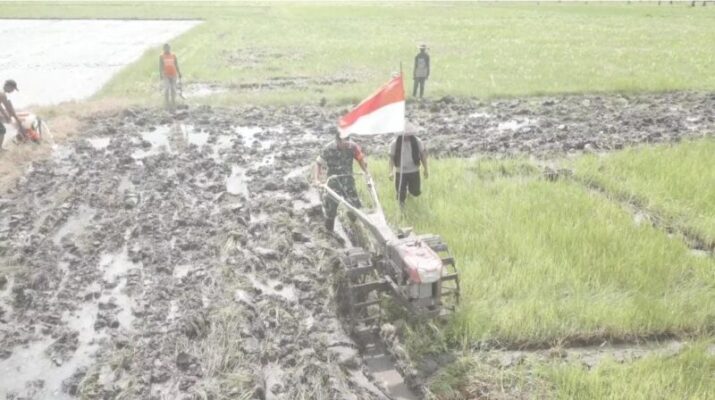 Babinsa Sertu Budiman Bantu Petani Bajak Sawah