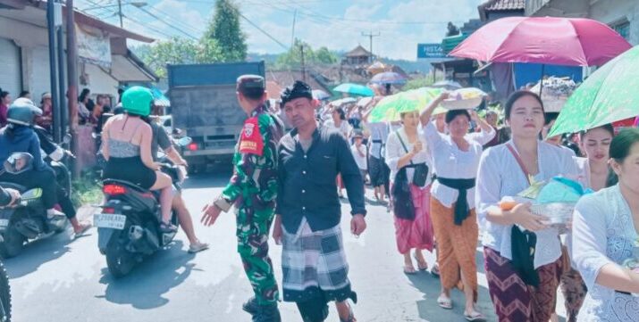 Personel Koramil 1623-04/Sidemen Koptu I Dewa Gd Eka Dwi Payana bersinergi melaksanakan pengamanan upacara Ngaben, di Desa Sidemen, Kec.Sidemen, Kab.Karangasem, pada Kamis (29/05/25). Kami