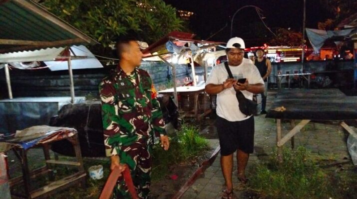 Babinsa Desa Padangbai Koramil 1623-05/Manggis Serda Komang Sudana bersama petugas Damkar melaksanakan pemadaman kebakaran tumpukan sampah, di Pasar Mumbul, Banjar Dinas Melanting, Desa Padang