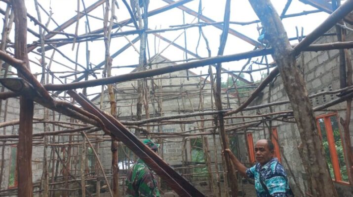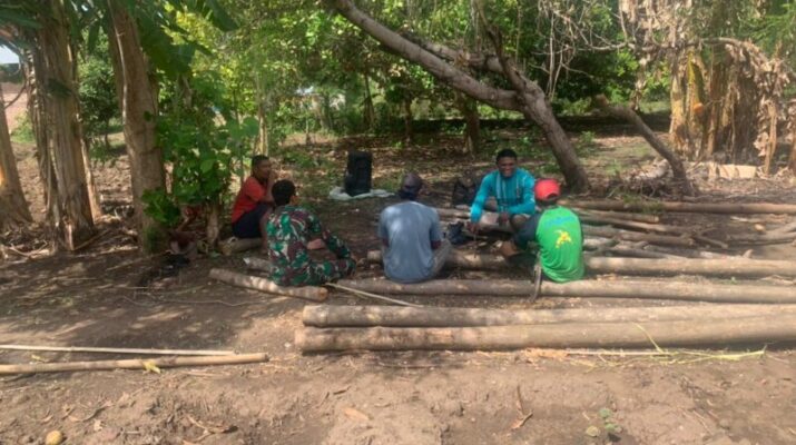 Semangat Gotong Royong Di Tunjukkan Oleh Babinsa Koramil 1621-03/Mollo Utara Bantu Bangun Gereja GMIT Maranatha Houtui