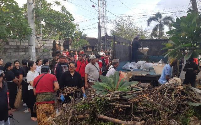 Peringati Bulan Bhakti Bung Karno, Babinsa Batubulan Kangin Dukung Karya Bakti Bersih – bersih Sampah