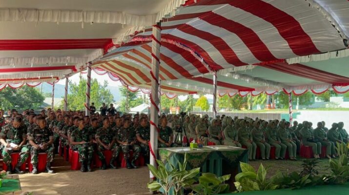Dompu-NTB. Panglima Komando Daerah Militer (Pangdam) IX/Udayana, Mayor Jenderal TNI Piek Budyakto, S.H., M.H., memberikan pengarahan dan motivasi kepada prajurit Komando Distrik Militer (Kodim)