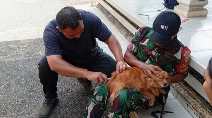 BALI – Badung, Dalam rangka pelaksanaan vaksinasi Rabies pada anjing di Desa Sulangai, Babinsa Desa Sulangai, Serka I Made Sudarta, mendampingi tim dari Dinas