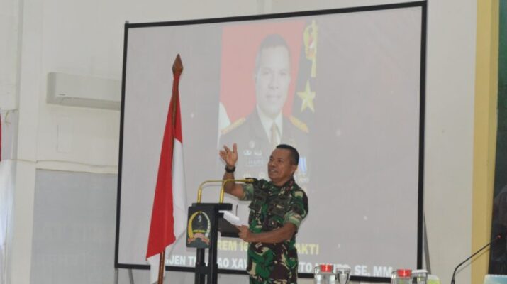 Kegiatan Komsos tersebut dibuka secara resmi oleh Komandan Korem 161/Wira Sakti Brigjen TNI Joao Xavier Barreto Nunes, S.E., M.M menekankan peran penting TNI sebagai