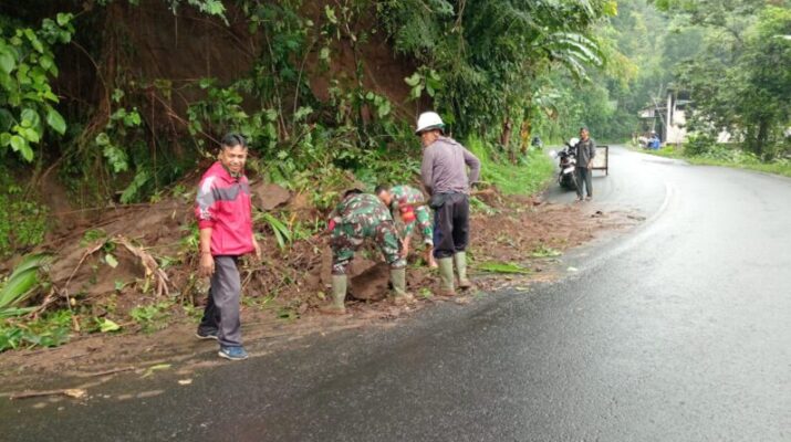 Koramil 1626-03/Tembuku bantu bersihkan material Akibat longsor