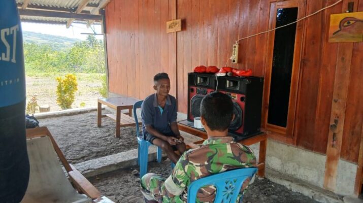 NTT-SABU RAIJUA, – Dalam upaya menjaga hasil pertanian warga, Babinsa Raenyale Koramil 1604-08/Sabu Raijua, Sertu Erens Imanuel Biha, melaksanakan komunikasi sosial (komsos) di rumah