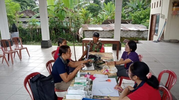 Tabanan — Babinsa Desa Jegu dari Koramil 1619-08/Penebel, Serka I Made Duduk, turut memberikan perhatian dan pengawasan langsung dalam kegiatan Puskesmas Keliling Penebel II
