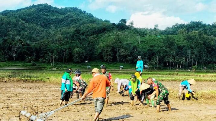 Babinsa Koramil 1608-07/Monta Uji Coba Alat Tanam Padi Manual Demi Efisiensi