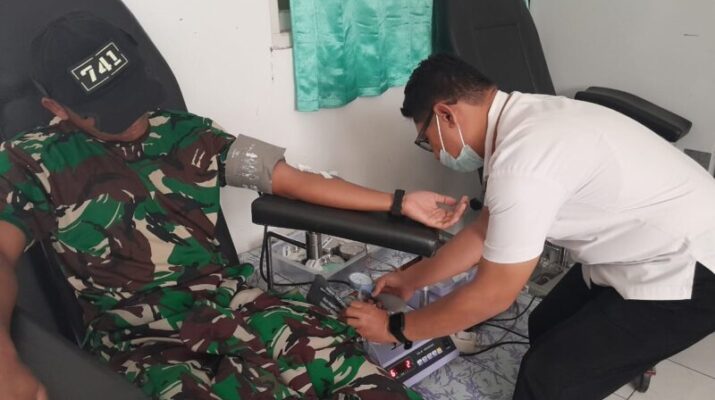 Satgas Yonif 741/GN Pos Ailala Sigap Berikan Bantuan Donor Darah Untuk Warga di Perbatasan