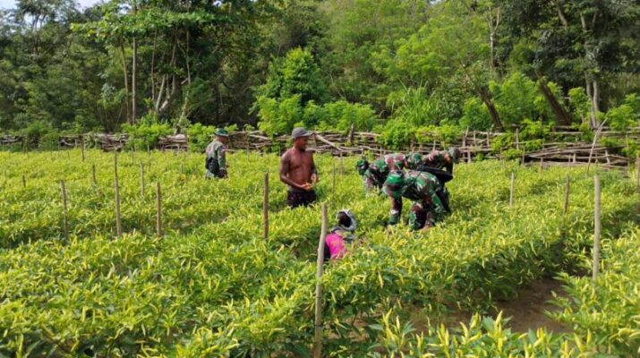 Belu – Pos Asulait membantu warga panen cabai di Dusun Fatubesi, Desa Sadi, Kecamatan Tasifeto Timur, Kabupaten Belu. Kamis (12/06/2025). Kegiatan yang dilaksanakan guna