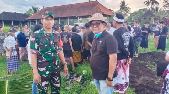 Gianyar – Babinsa Desa Siangan Koramil 1616-01/Gianyar Serka Komang Kartawan bersama Bhabinkamtibmas Siangan Aiptu Wayan Sutara serta BPBD Kabupaten Gianyar melakukan evakuasi jenazah seorang