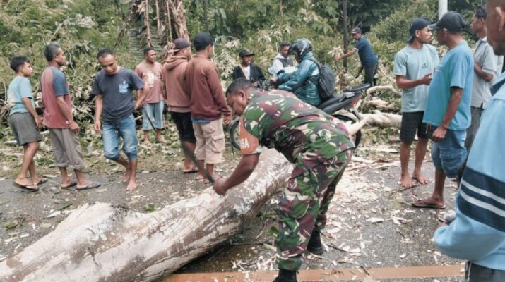 Akibat Angin Kencang, Akses Jalan Dusun Nelu Tertutup – Babinsa dan Warga Bergerak Cepat.