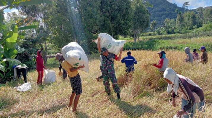 NTT – Ende/Detusoko, Babinsa Koramil 03/Detusoko, Serka Umbu Pati mendampingi Anggota Poktan Embu Welu memanen padi milik bapak. Stefanus mbou di Desa Sipi Jena,Kec