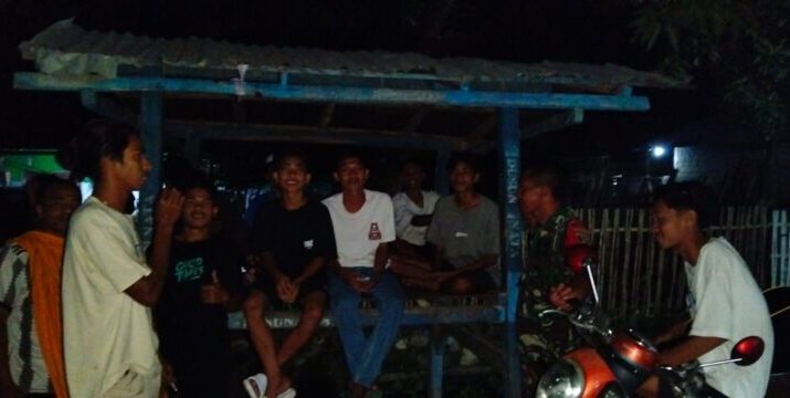 Dompu-NTB, Dalam rangka menjaga keamanan lingkungan serta mencegah berkembangnya potensi gangguan Kamtibmas, Babinsa Koramil 1614-03/Hu’u, Sertu Junaidin, melaksanakan kegiatan ronda malam bersama para pemuda