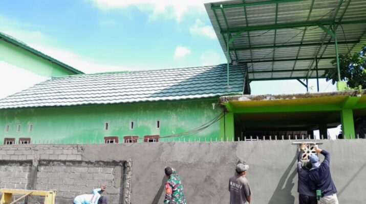 Babinsa Daha Turun Tangan Bantu Warga Plester Pagar Rumah di Dusun Daha Timur