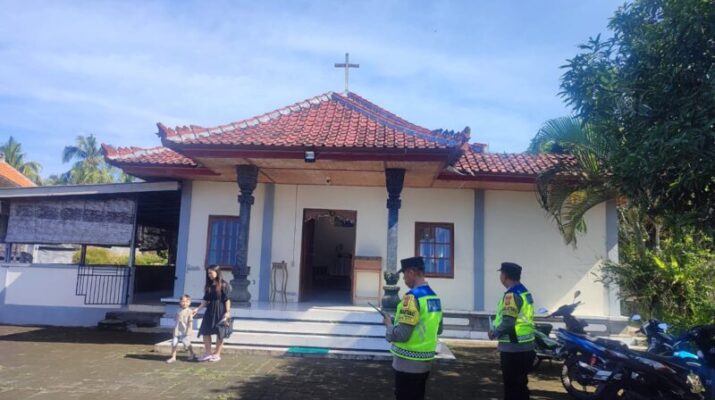Polsek Selemadeg Barat melaksanakan pengamanan Ibadah Umat Kristen di Gereja Sabdajati Selabih