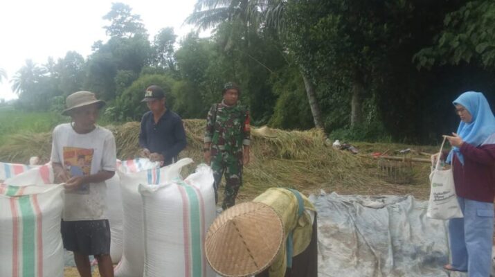 Lombok Timur – Babinsa Desa Peringgajurang Utara, Serka Lalu Kusmayadi dari Koramil 1615-06/Terara melaksanakan kegiatan pendampingan bersama Satuan Tugas Serapan Gabah (Satgas Sergab) dalam