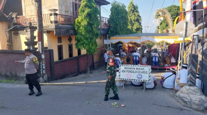 Atur Lalu Lintas, Tiga Pilar Desa Lembongan Amankan Persembahyagan Warga