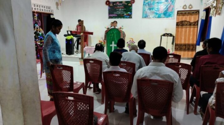 NTT-NAIKLIU, – Babinsa Posramil Manubelon Koramil 1604-03/Naikliu, Serka Lodian Radja Wila melaksanakan kegiatan kebaktian Minggu pagi bersama Jemaat Gereja Bethel Indonesia (GBI) Kristus Raja
