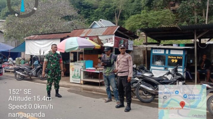 NTT – Ende/Nangapanda, Untuk menciptakan kondisi wilayah yang aman dan lancar Babinsa Koramil 01/Ende dan Babinkamtibmas melaksanakan pengamanan dan pengaturan lalulintas di Pasar Nangapanda,
