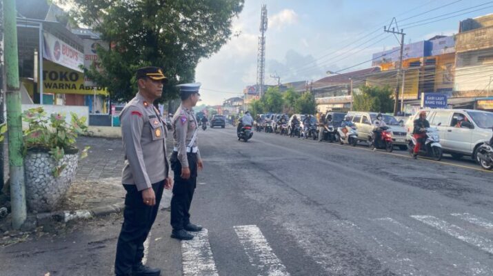 Kapolsek Tabanan Pantau Langsung Pengaturan Lalulintas di Pagi Hari