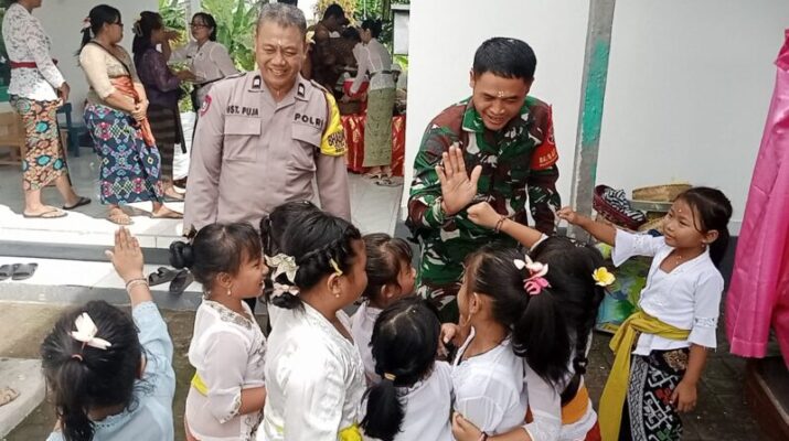 Klungkung,- Babinsa Manduang Koramil 1610-01/Klungkung erda Bagus menghadiri kegiatan upacara Melaspas di Sekolah TK Negeri Manduang di Dusun Kaleran Desa Manduang, Selasa ( 17/06/25