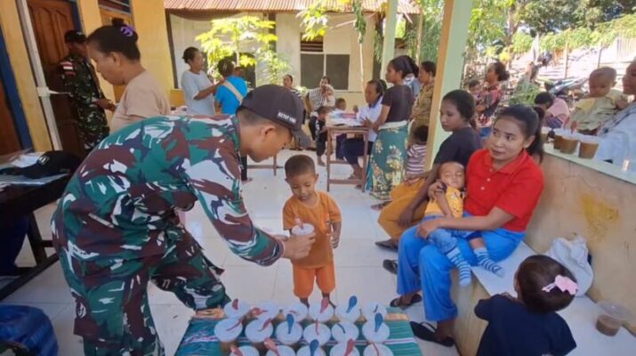 Dukung Posyandu, Pos Damar Satgas Yonif 741/GN Berikan Bubur Kacang Hijau di Daerah Perbatasan
