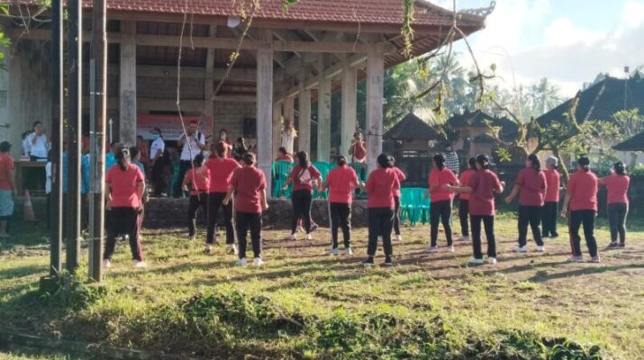 Gianyar – Samplangan, dalam rangka kunjungan kerja Ketua Tim Penggerak PKK Kabupaten Gianyar di Lingkungan Selat, Babinsa Kelurahan Samplangan Koramil 1616-01/Gianyar Serka I Komang