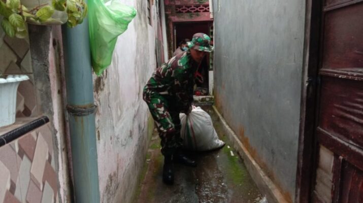 Babinsa Semarapura Kangin Bersinergi Gelar Gotong Royong Bersihkan Rumah Warga