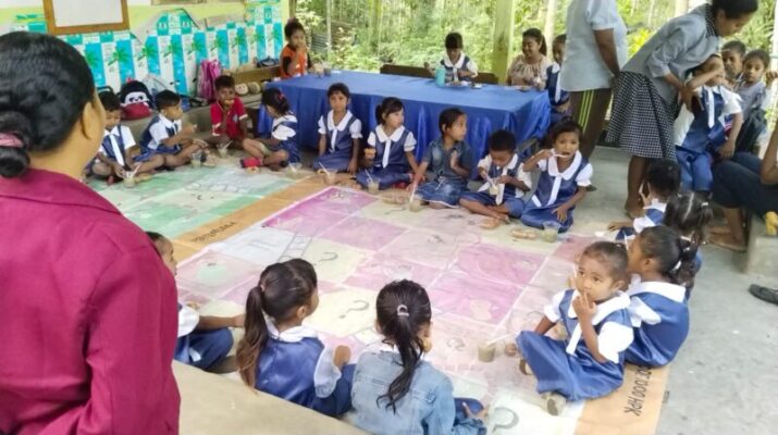 Malaka – Pos Fatuha adakan kegiatan membagikan makanan gratis berupa bubur kacang hijau, telur rebus dan donat kepada siswa Paud Salib Suci Alasdi Desa
