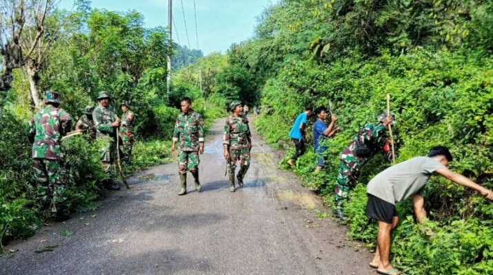 Sabtu, 21 Juni 2025 – Koramil 1608-07/Monta yang dipimpin langsung oleh Wadanramil 07/Monta beserta anggota melaksanakan kegiatan Karya Bakti pembersihan bahu jalan lintas Tolo