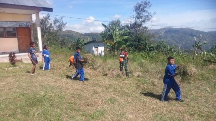 Belu – Pos Fohuk menggelar kegiatan karya bakti pembersihan lingkungan di SMP Negeri Piebulak, Desa Loonuna, Kecamatan Lamaknen Selatan, Kabubaten Belu. Sabtu (10/06/2025). Kegiatan