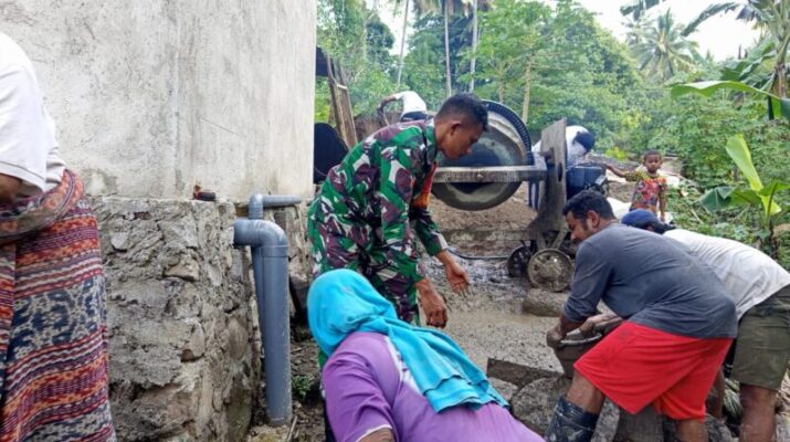 Babinsa Koramil 1603-01/Alok Laksanakan Komsos: Gotong-Royong Bangun Saluran Pembuangan Limbah.