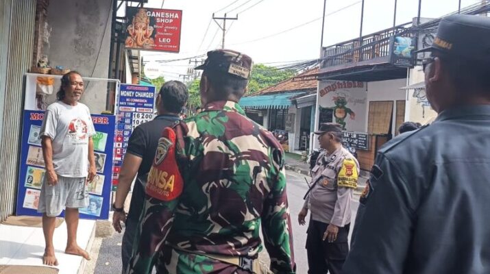 BALI – Denpasar, Babinsa Kelurahan Sanur, Serka Ikram Sena Pewa, bersama staf Desa dan aparat setempat melaksanakan kegiatan penertiban Pedagang Kaki Lima (PKL) di
