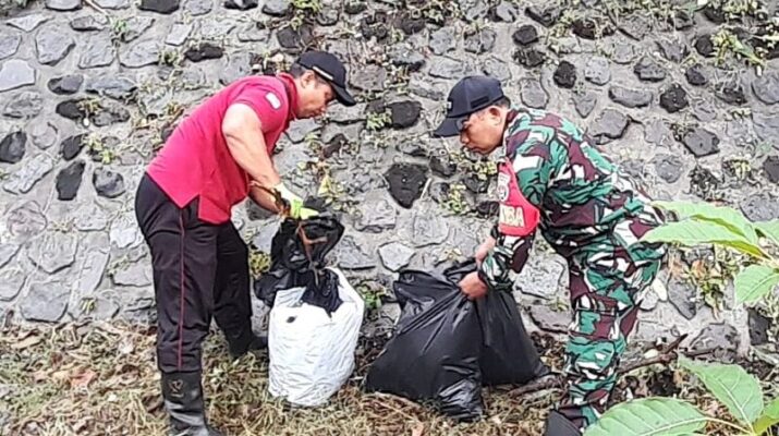 BALI – Denpasar, Babinsa Pemogan, Serka Budi Muhtar, bersama warga melakukan kegiatan gotong royong dan penanaman pohon di bantaran sungai Taman Pancing Barat Desa