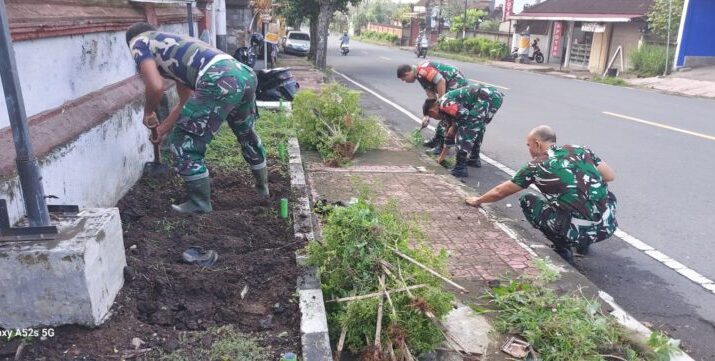 Semangat Gotong Royong, Koramil Banjarangkan Laksanakan Pembersihan Pangkalan