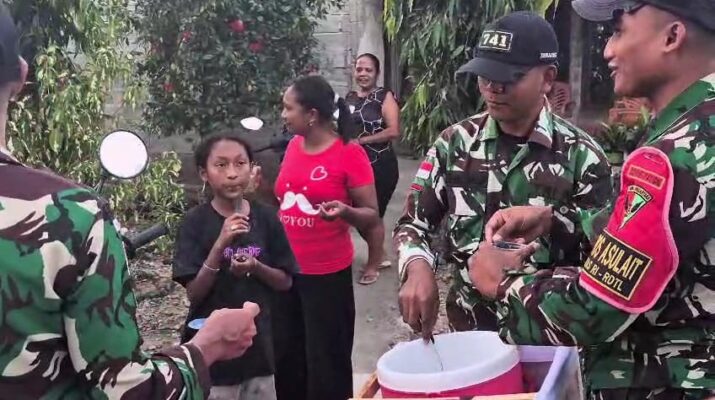 Hangatkan Hati Warga Perbatasan, Pos Asulait Rutin Bagikan Bubur Kacang Hijau Keliling